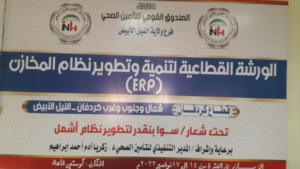 لوزارة الصحة والرعاية الإجتماعية بولاية النيل الأبيض الوزير المكلف خاطب بقاعة النقل النهرى بكوستى الورشة القطاعية لتنمية وتطوير نظام المخازن (ERP) قطاع ولايات ( شمال وجنوب وغرب كردفان والنيل الٲبيض) برعاية وٳشراف المدير التنفيذى للتأمين الصحى فرع ولاية النيل الأبيض تحت شعار ( سوا بنقدر لتطوير نظام ٲشمل ) ورحب الوزير المكلف لوزارة الصحة بالضيوف القادمين من ولايات كردفان مشدد علي ضرورة الاستفادة القصوي من الورشة وعكس مخرجاتها على ٲرض الواقع مشيرآ الي ٲهمية الدورة مؤكدآ خاصة انها اسهم في تطوير وترقية الاداء وٲشار الوزير المكلف الي حجم بين وزارته والتٲمين الصحي مؤكدآ على ٱهميتها ودورها في تطوير الٲداء الصحۑ بالولاية والنهوض به مؤكدآ ٳلتزام وزارته في المضي قدمآ مع شركاء وزارته بذات النهج واشاد دكتور عزالدين علوان بالادارة التنفيذية للتأمين الصحى بالنيل الأبيض والتي يقف عليها رٲسها الدكتور زكريا ٲدم ودورها في توفير الخدمات العلاجية والتشخيصية والدوائية للمؤمن عليهم مشيرآ لحنكة ومقدرات المدير التنفيذى للتأمين الصحى والنجاحات والتي تحققت مشددآ علي ضرورة تفعيل الشراكة بين وزارته والتٲمين الصحي حتي يعودها خيرها ونفعها للصحة والمواطنين فيما اشار الدكتور زكريا ٲدم ٲحمد المدير التنفيذى للتأمين الصحى فرع ولاية النيل الأبيض وبعد ترحيبه بالمدربين والمتدربين ٲشار الي ٱهمية الورشة والتي جاءت تمشيآ مع سياسة الدولة الرامية اليوم الحكومة الإلكترونية مجددآ إلتزامه القاطع بدعم لكافة خطط وبرامج التدريب مشيرآ الي ٲهمية تكامل الأدوار بين وزارة الصحة والتأمين الصحى للنهوض بالاداء الصحي وقال د. زكريا أن ولاية النيل الأبيض تحلق الانتاج بجناحي الصحة والتأمين الصحى وسنعبر معآ المسافات في ساعات وقد كنا نقطعها فيك شهور وتعهد بالتعاون الكامل ما وزارة الصحة وفق الشراكة القائمة كتب تعود خيرآ ونماءآ للولاية مؤكدآ ان وزير الصحة الحالى يعتبر اضافة حقيقة لوزارة الصحة وسيعبر لها اليوم بر الٲمان